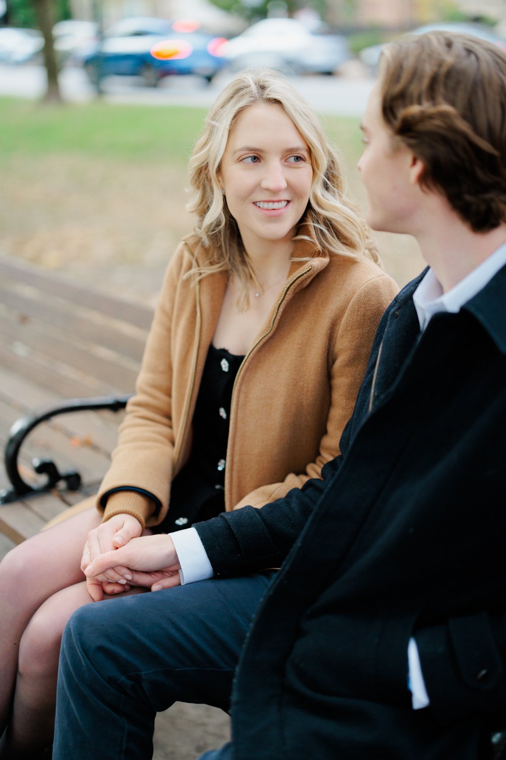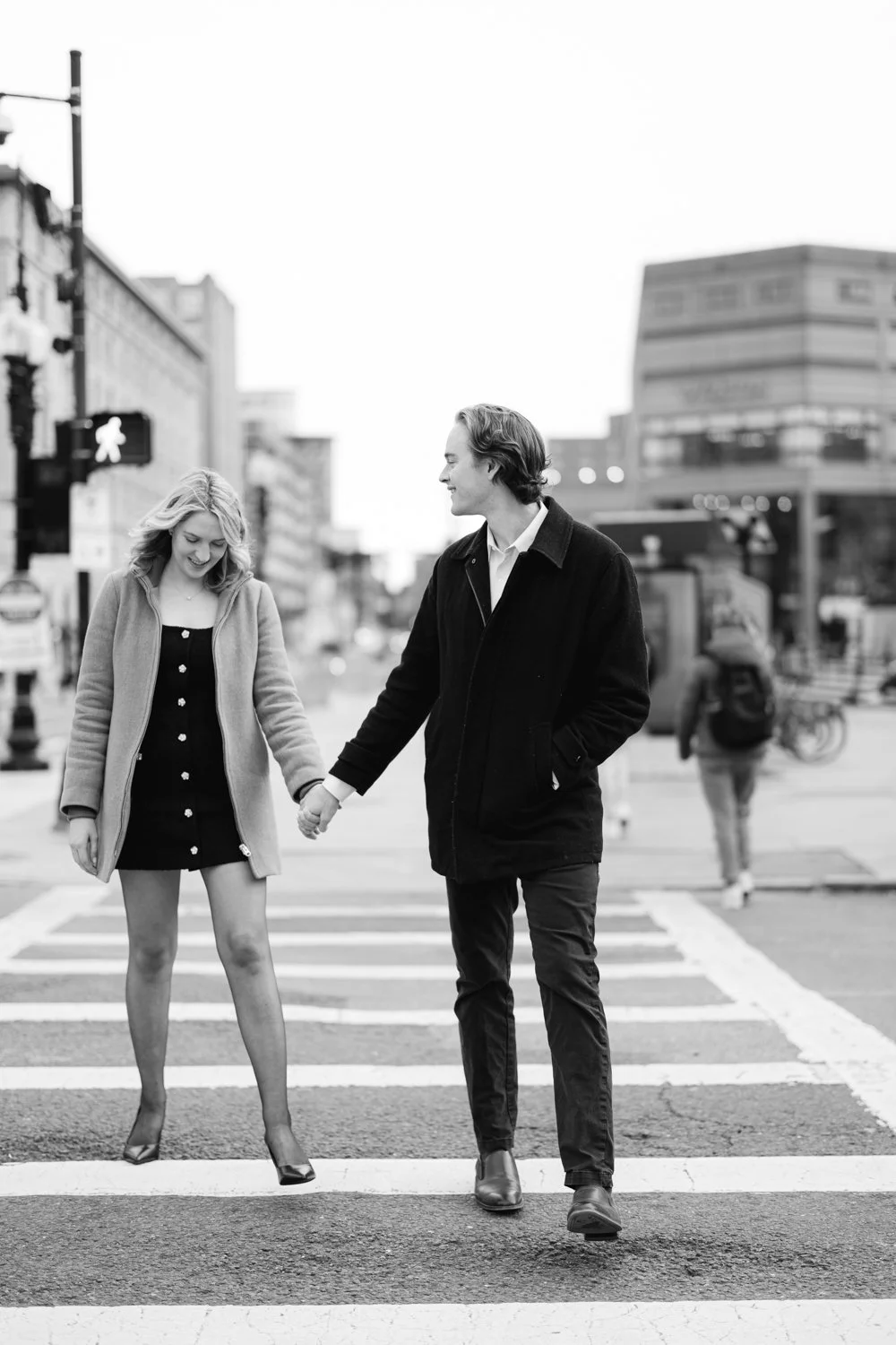 In the heart of Boston, L+N's engagement session was inspired by a casual day of exploring an art museum, one of their favorite pastimes. Their desire for a candid feel led us from the stately halls of the Boston Public Library to the vibrant streets of Back Bay and the Boston Public Gardens.
