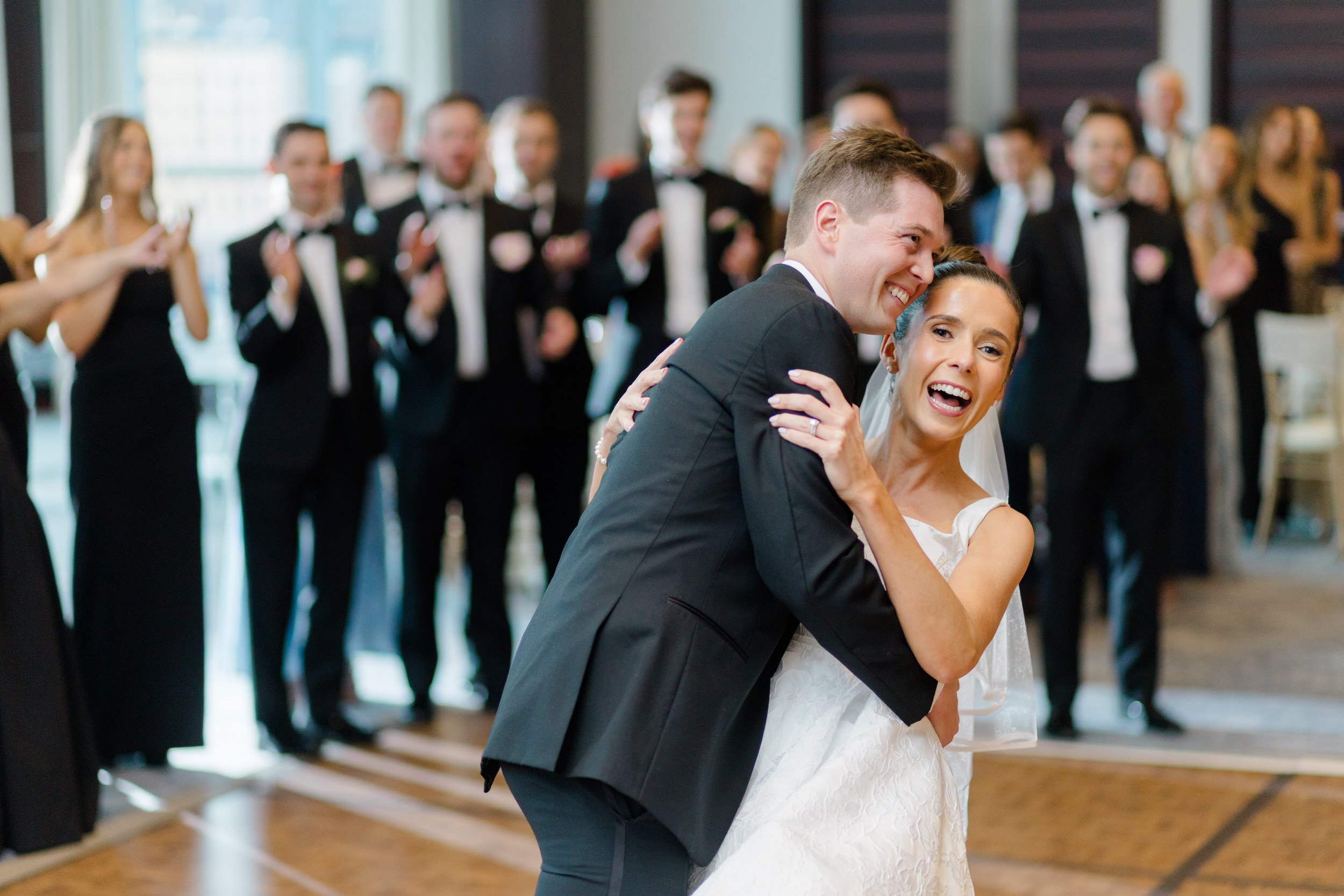 The reception was at the Intercontinental Hotel, where the space and the view gave the evening a clean, modern backdrop. The rest of the night was full of good energy, great music, and a packed dance floor, exactly the kind of celebration Emily and Kevin had hoped for.