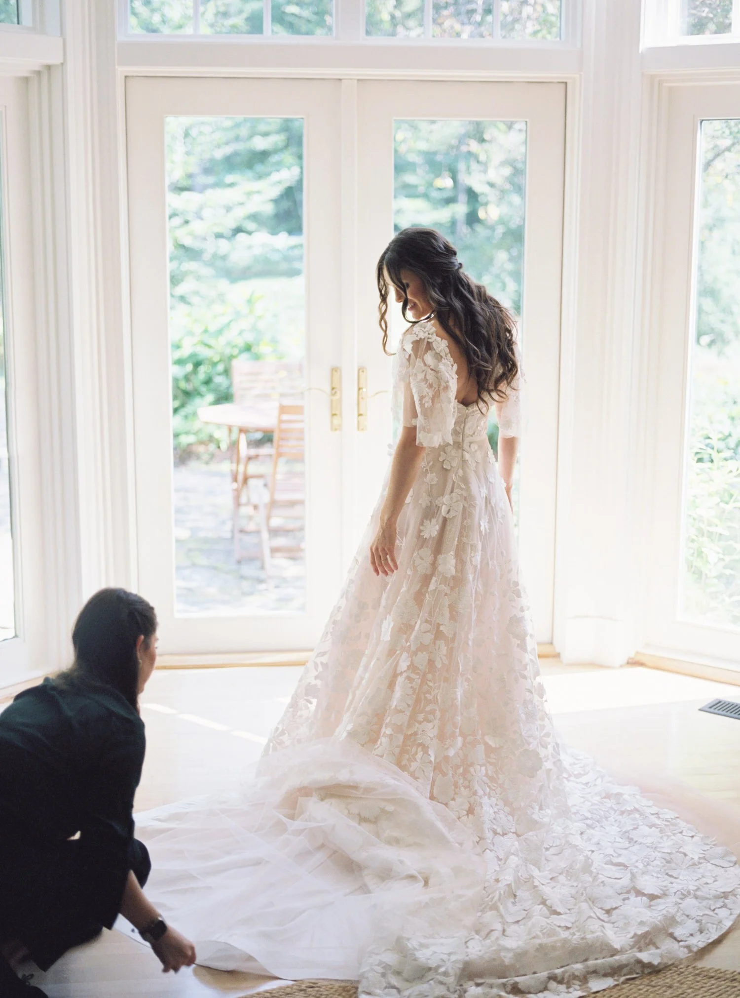 S+M's extraordinary wedding weekend unfolded in the gorgeous Lincoln, Massachusetts. Surrounded by their families, their sweet baby, and two well-behaved dogs, the couple began their day in the comfort of their beautiful home.